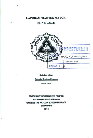NINGRUM, FALENTIN KRISTIAN (2010) LAPORAN PRAKTEK MAYOR KLINIS ANAK (5). Other. Universitas Katolik Soegijapranata Semarang, Semarang. (Unpublished)