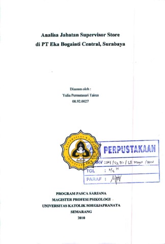TAIRAS, YULIA PERMATASARI (2010) ANALISA JABATAN SUPERVISOR STORE DI PT EKA BOGAINTI CENTRAL, SURABAYA. Other. Universitas Katolik Soegijapranata Semarang, Semarang. (Unpublished)
