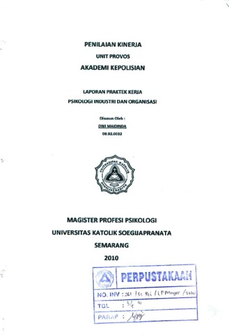 MAIDINDA, DWI (2010) PENILAIAN KINERJA UNIT PROVOS AKADEMI KEPOLISIAN LAPORAN PRAKTEK KERJA PSIKOLOGI INDUSTRI DAN ORGANISASI. Other. Universitas Katolik Soegijapranata Semarang, Semarang. (Unpublished)