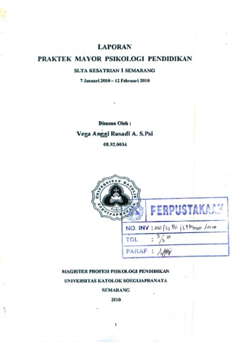 RUSADI, VEGA ANGGI (2010) LAPORAN PRAKTEK MAYOR PSIKOLOGI PENDIDIKAN SLTA KESATRIAN 1 SEMARANG 7 JANUARI 2010 - 12 FEBRUARI 2010. Other. Universitas Katolik Soegijapranata Semarang, Semarang. (Unpublished)