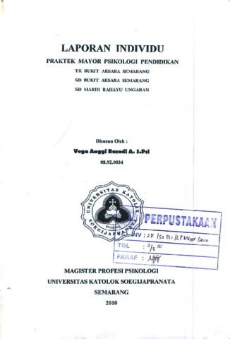 RUSADI, VEGA ANGGI (2010) LAPORAN INDIVIDU PRAKTEK MAYOR PSIKOLOGI PENDIDIKAN TK BUKIT AKSARA SEMARANG SD BUKIT AKSARA SEMARANG SD MARDI RAHAYU UNGARAN. Other. Universitas Katolik Soegijapranata Semarang, Semarang. (Unpublished)