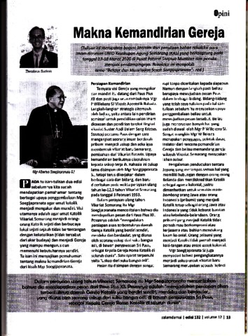 SUDIMIN, THEODORUS Makna Kemandirian Gereja. SALAM DAMAI. ISSN -