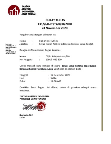 Surat Tugas IAI Dr. Krisprantono.pdf Download (170kB) | Preview |
