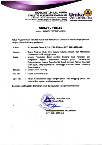 Simandjuntak, Marcella Elwina and Suroto, Valentinus and SARWO, YOHANES BUDI and Setianto, Benny Danag (2020) IMPLEMENTASI TANGGUNGJAWAB NEGARA PASCA-KONFLIK SOSIAL BERBASIS AGAMA KELOMPOK SUNNI-SYIAH, SAMPANG-MADURA. In: Seminar Nasional Hasil Penelitian dan Pengabdian kepada Masyarakat: “URGENSI PENGEMBANGAN PENELITIAN DAN PENGABDIAN KEPADA MASYARAKAT DALAM KONTEKS BUDAYA INDONESIA SEBAGAI WUJUD KETANGGUHAN BANGSA”, October, 20, 2020, Tarumanegara University, via Zoom.