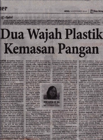 HANTORO, INNEKE (2016) Dua Wajah Plastik Kemasan Pangan. Dua Wajah Plastik Kemasan Pangan.
