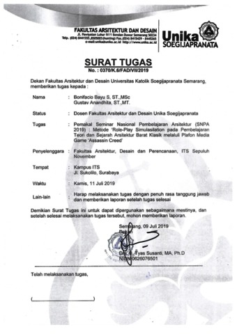SENASAPUTRO, BONIFACIO BAYU and ANANDHITA, GUSTAV (2019) Metode Role-Play Simulation pada Pembelajaran Teori dan Sejarah Arsitektur BaratKlasik melalui Platform Media Game Assassin’s Creed. In: Belajar Membelajarkan : Redleksi Kritis Pembelajaran Arsitektur, Surabaya.