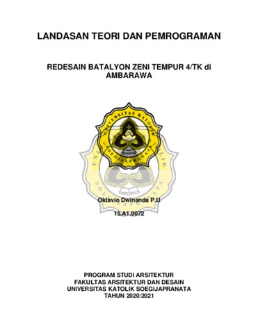 Dwinanda P.U, Oktavio (2021) REDESAIN BATALYON ZENI TEMPUR 4/TK di AMBARAWA. Other thesis, Universitas Katolik Soegijapranata Semarang.