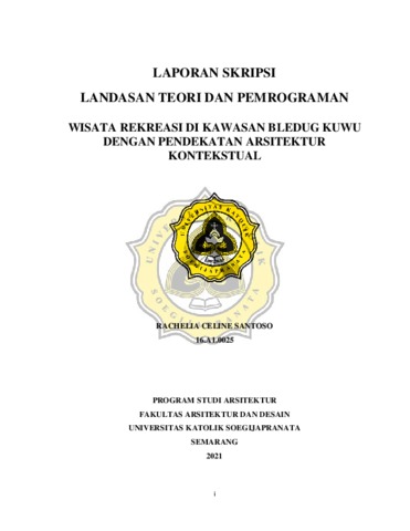 SANTOSO, RACHELIA CELINE (2021) WISATA REKREASI DI KAWASAN BLEDUG KUWU DENGAN PENDEKATAN ARSITEKTUR KONTEKSTUAL. Other thesis, Universitas Katholik Soegijapranata Semarang.