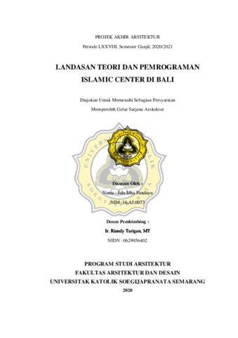 Fandayu, Jalu Idha (2021) ISLAMIC CENTER DI BALI. Other thesis, Universitas Katholik Soegijapranata Semarang.