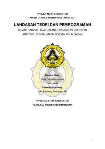 Rumah merupakan tempat tinggal yang dimana manusia sangat membutuhkan untuk tinggal dimanapun lokasinya karena rumah bisa sebagai tempat untuk istirahat, berteduh, dan lain sebagainya. Anak jalanan merupakan anak-anak yang berada dan biasa hidup dijalan dengaan keadaan seadanya anak-anak tersebut memiliki banyak latar belakang masing-masing, di Kota Pekalongan jumlah anak jalanan tiap tahunnya meningkat dan untuk penanganan anak jalanan di Kota Pekalongan belom tertangani secara baik. Rumah Singgah merupakan hal yang wajar untuk didirikan di Kota Pekalongan sebagaimana untuk menangani anak jalanan secara baik dan didik untuk menjadi manusia seutuhnya dalam konteks moral kemasyarakatan