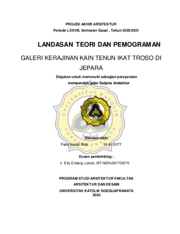 Rizki, Faris Naufal (2021) GALERI KERAJINAN KAIN TENUN IKAT TROSO DI JEPARA. Other thesis, Universitas Katholik Soegijapranata Semarang.