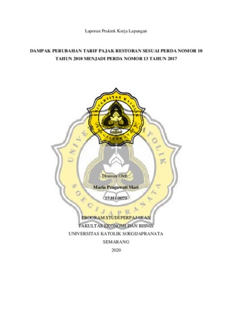 Mari, Maria Pragawati (2020) DAMPAK PERUBAHAN TARIF PAJAK RESTORAN SESUAI PERDA NOMOR 10 TAHUN 2010 MENJADI PERDA NOMOR 13 TAHUN 2017. Diploma thesis, Universitas Katolik Soegijapranata Semarang.