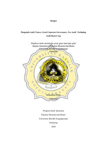 Dolle, Kresensia (2020) Pengaruh Audit Tenure, Good Corporate Governance, Fee Audit Terhadap Audit Report Lag. Other thesis, Universitas Katolik Soegijapranata Semarang.