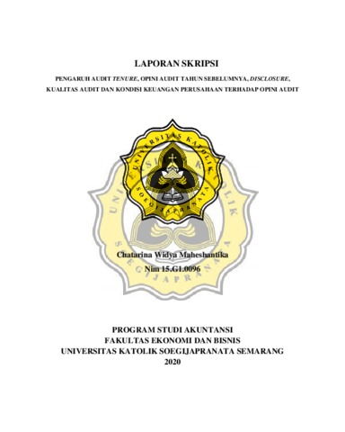 Maheshantika, Chatarina Widya (2020) PENGARUH AUDIT TENURE, OPINI AUDIT TAHUN SEBELUMNYA, DISCLOSURE, KUALITAS AUDIT DAN KONDISI KEUANGAN PERUSAHAAN TERHADAP OPINI AUDIT. Other thesis, Universitas Katolik Soegijapranata Semarang.