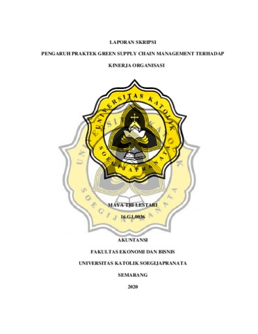 Lestari, Maya Tri (2020) PENGARUH GREEN SUPPLY CHAIN MANAGEMENT TERHADAP KINERJA ORGANISASI. Other thesis, Universitas Katolik Soegijapranata Semarang.
