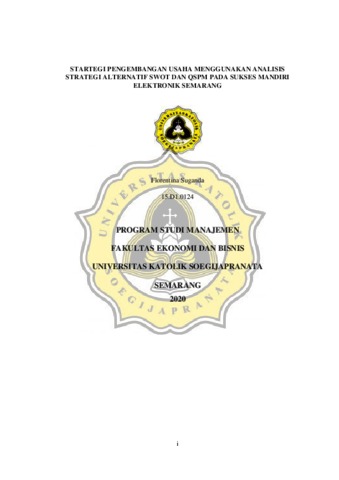 SUGANDA, FLORENTINA (2020) STRATEGI PENGEMBANGAN USAHA MENGGUNAKAN ANALISIS STRATEGI ALTERNATIF SWOT DAN QSPM PADA SUKSES MANDIRI ELEKTRONIK SEMARANG. Other thesis, UNIKA SOEGIJAPRANATA SEMARANG.