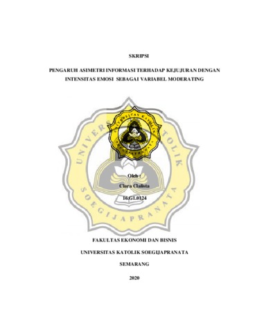 Clalista, Clara (2020) PENGARUH ASIMETRI INFORMASI TERHADAP KEJUJURAN DENGAN INTENSITAS EMOSI SEBAGAI VARIABEL MODERATING. Other thesis, Universitas Katolik Soegijapranata Semarang.