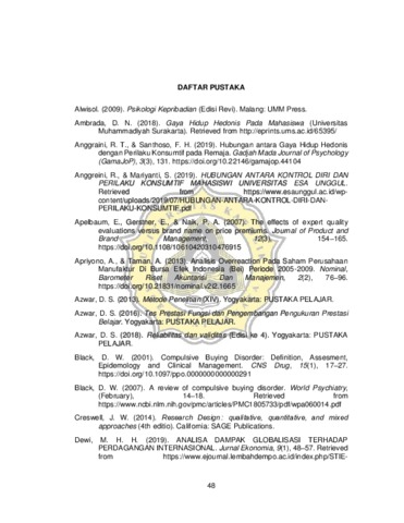 Penelitian ini bertujuan untuk mengetahui ada atau tidaknya hubungan antara gaya hidup hedonis dengan compulsive buying pada mahasiswa. Hipotesis dari penelitian ini adalah adanya hubungan positif antara gaya hidup hedonis dengan compulsive buying. Subjek penelitian ini adalah mahasiswa aktif Universitas Katolik Soegijapranata yang berusia 18 – 21 tahun. Pengambilan sampel pada penelitian ini menggunakan teknik incidental sampling. Alat ukur yang digunakan adalah skala compulsive buying dan skala gaya hidup hedonis, dengan reliabilitas sebesar 0,854 untuk skala compulsive buying dengan 16 item valid dan sebesar 0,927 untuk skala gaya hidup hedonis dengan 26 item valid. Analisis data penelitian menggunakan teknik korelasi Product-Moment Pearson. Hasil analisis korelasi menunjukan rxy=0,561 dengan p=0,00 (p<0,01) yang berarti menunjukkan bahwa hipotesis penelitian ini diterima, yaitu adanya hubungan positif antara gaya hidup hedonis dengan compulsive buying pada mahasiswa. Semakin tinggi gaya hidup hedonis maka semakin tinggi pula tingkat compulsive buying pada mahasiswa, dan juga sebaliknya.