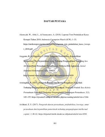 Sarastri, Rania Fa'atin Sri (2020) “Pengaruh Tata Kelola Perusahaan Terhadap Kebijakan Anti Korupsi di Indonesia Sektor Property, Real Estate & Building Construction”. Other thesis, Universitas Katolik Soegijapranata Semarang.
