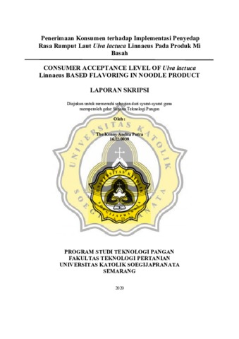 Putra, The Kenny Andita (2020) Penerimaan Konsumen terhadap Implementasi Penyedap Rasa Rumput Laut Ulva lactuca Linnaeus Pada Produk Mi Basah. Other thesis, Universitas Katolik Soegijapranata Semarang.