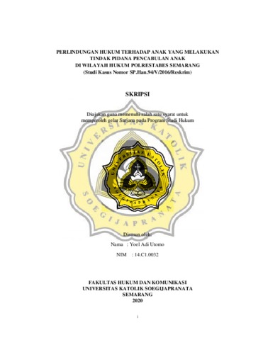 Utomo, Yoel Adi (2020) PERLINDUNGAN HUKUM TERHADAP ANAK YANG MELAKUKAN TINDAK PIDANA PENCABULAN ANAK DI WILAYAH HUKUM POLRESTABES SEMARANG (Studi Kasus Nomor SP.Han.94/V/2016/Reskrim). Other thesis, Universitas Katolik Soegijapranata Semarang.