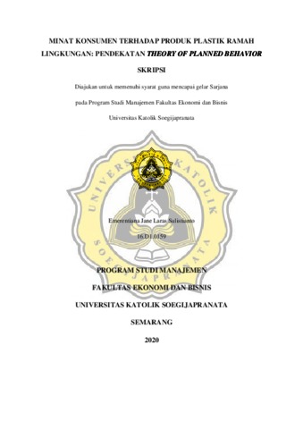 SULISTIANTO, EMERENTISNS JANE LARAS (2020) MINAT KONSUMEN TERHADAP PRODUK PLASTIK RAMAH LINGKUNGAN : PENDEKATAN THEORY OF PLANNED BEHAVIOR. Other thesis, UNIKA SOEGIJAPRANATA SEMARANG.