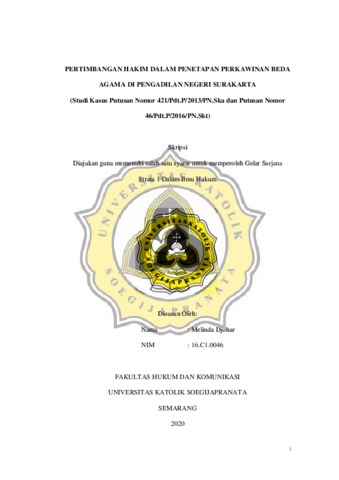 Djohar, Melinda (2020) PERTIMBANGAN HAKIM DALAM PENETAPAN PERKAWINAN BEDA AGAMA DI PENGADILAN NEGERI SURAKARTA (Studi Kasus Putusan Nomor 421/Pdt.P/2013/PN.Ska dan Putusan Nomor 46/Pdt.P/2016/PN.Skt). Other thesis, Universitas Katolik Soegijapranata Semarang.