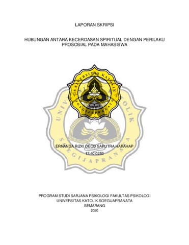 Harahap, Emanda Rizki Deco Saputra (2020) HUBUNGAN ANTARA KECERDASAN SPIRITUAL DENGAN PERILAKU PROSOSIAL PADA MAHASISWA. Other thesis, Universitas Katolik Soegijapranata Semarang.