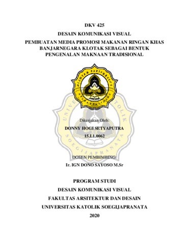 SETYAPUTRA, DONNY HOGI (2020) PEMBUATAN MEDIA PROMOSI MAKANAN RINGAN KHAS BANJARNEGARA KLOTAK SEBAGAI BENTUK PENGENALAN MAKANAN TRADISIONAL. Other thesis, UNIKA SOEGIJAPRANATA.