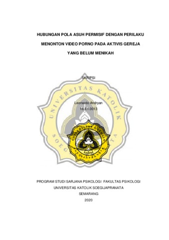 Andryan, Leonardo (2020) HUBUNGAN POLA ASUH PERMISIF DENGAN PERILAKU MENONTON VIDEO PORNO PADA AKTIVIS GEREJA YANG BELUM MENIKAH. Other thesis, Universitas Katolik Soegijapranata Semarang.