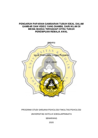 Purnama, Louis Pramudeta Lingga (2020) PENGARUH PAPARAN GAMBARAN TUBUH IDEAL DALAM GAMBAR DAN VIDEO YANG DIAMBIL DARI IKLAN DI MEDIA MASSA TERHADAP CITRA TUBUH PEREMPUAN REMAJA AWAL. Other thesis, Universitas Katolik Soegijapranata Semarang.