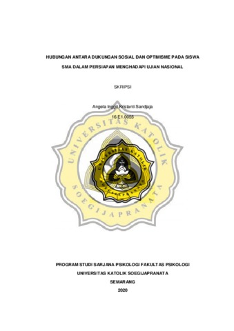 Sandjaja, Angela Inggit Kristanti (2020) HUBUNGAN ANTARA DUKUNGAN SOSIAL DAN OPTIMISME PADA SISWA SMA DALAM PERSIAPAN MENGHADAPI UJIAN NASIONAL. Other thesis, Universitas Katolik Soegijapranata Semarang.