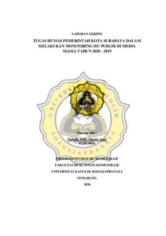 AGUS, NAFTALIA DELLA ZHEPTA (2020) TUGAS HUMAS PEMERINTAH KOTA SURABAYA DALAM MELAKUKAN MONITORING ISU PUBLIK DI MEDIA MASSA TAHUN 2018 - 2019. Other thesis, UNIKA SOEGIJAPRANATA SEMARANG.