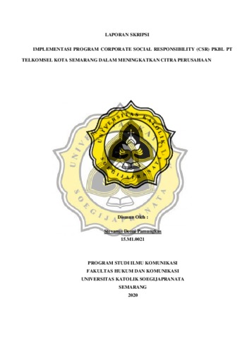 PAMUNGKAS, STEVANUS DEONI (2020) IMPLEMENTASI PROGRAM CORPORATE SOCIAL RESPONSIBILITY (CSR) PKBL PT TELKOMSEL KOTA SEMARANG DALAM MENINGKATKAN CITRA PERUSAHAAN. Other thesis, UNIKA SOEGIJAPRANATA SEMARANG.