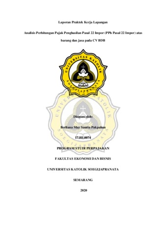 Pakpahan, Berliana May Sauria (2020) Analisis Perhitungan Pajak Penghasilan Pasal 22 Impor (PPh Pasal 22 Impor) atas barang dan jasa pada CV BDB. Diploma thesis, Unika Soegijapranata Semarang.