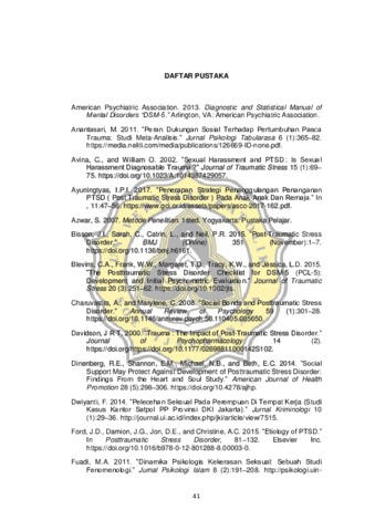 Kristanti, Theresia Artha Budi (2020) HUBUNGAN ANTARA DUKUNGAN SOSIAL DENGAN POST TRAUMATI C STRESS DI SORDER (PTSD) PADA PEREMPUAN KORBAN PELECEHAN SEKSUAL. Other thesis, Universitas Katolik Soegijapranata Semarang.