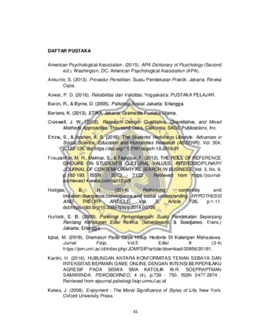Indika, Cathalya (2020) HUBUNGAN ANTARA KONFORMITAS PADA TEMAN SEBAYA DENGAN GAYA HIDUP HEDONISME PADA MAHASISWA. Other thesis, Universitas Katolik Soegijapranata Semarang.