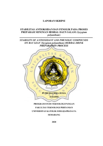 AULIA, PUTRI RACHMA (2020) STABILITAS ANTIOKSIDAN DAN FENOLIK PADA PROSES PREPARASI MINUMAN HERBAL DAUN SALAM (Syzygium polyanthum). Other thesis, UNIKA SOEGIJAPRANATA SEMARANG.