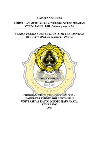 SUGIARTO, DELLA (2020) LAPORAN SKRIPSI FORMULASI BUBBLE PEARLS DENGAN PENAMBAHAN PUREE JAMBU BIJI (Psidium guajava L.). Other thesis, UNIKA SOEGIJAPRANATA SEMARANG.