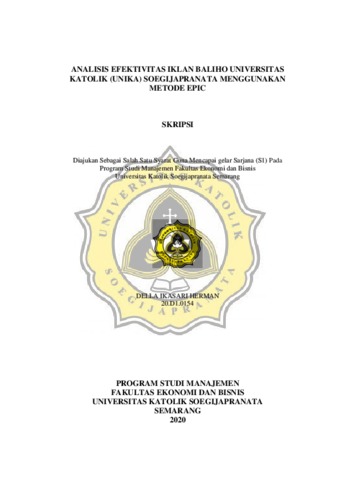 Pemasaran merupakan suatu aspek yang penting bagi kelansungan perusahaan. Apabila ingin dikenal oleh masyarakat luas dan eksistensinya tetap terjaga, perusahaan membutuhkan pemasaran yang tepat dalam mengkomunikasikan baik produk maupun tujuannya. Salah satu metode komunikasi pemasaran yang sering digunakan adalah iklan. Berbagai perusahaan menggunakan iklan karena selain jangkauannya yang luas, efisiensi biaya dan kemampuannya untuk menarik perhatian konsumen dapat membantu dalam meningkatkan penjualan . salah satu perusahaan yang menggunakan iklan sebagai sarana komunikasinya adalah Perguruan Tinggi. UNIKA Soegijapranata Semarang merupakan salah satu perguruan tinggi yang menggunakan iklan baliho sebagai media untuk mempromosikan tentang kampusnya. Dengan melakukan analisis efektivitas terhadap iklan baliho yang digunakan UNIKA Soegijapranata dengan menggunakamn model EPIC , dapat terlihat bahwa iklan yang digunakan untuk mempromosikan pendaftaran.
