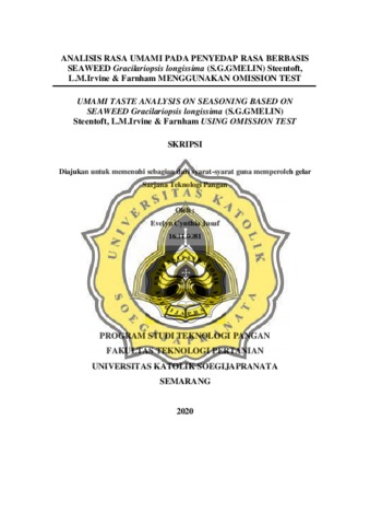 YUSUF, EVELYN CYNTHIA (2020) ANALISIS RASA UMAMI PADA PENYEDAP RASA BERBASIS SEAWEED Gracilariopsis longissima (S.G.GMELIN) Steentoft, L.M.Irvine & Farnham MENGGUNAKAN OMISSION TEST. Other thesis, UNIKA SOEGIJAPRANATA SEMARANG.