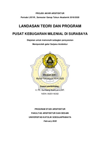 Tanuwijaya, Michell (2020) PUSAT KEBUGARAN MILENIAL DI SURABAYA. Other thesis, Universitas Katolik Soegijapranata Semarang.