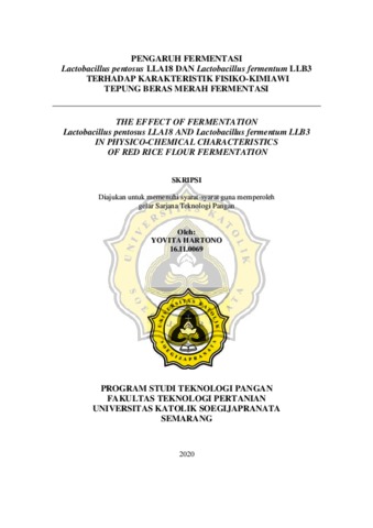 HARTONO, YOVITA (2020) PENGARUH FERMENTASI Lactobacillus pentosus LLA18 DAN Lactobacillus fermentum LLB3 TERHADAP KARAKTERISTIK FISIKO-KIMIAWI TEPUNG BERAS MERAH FERMENTASI. Other thesis, Unika Soegijapranata Semarang.