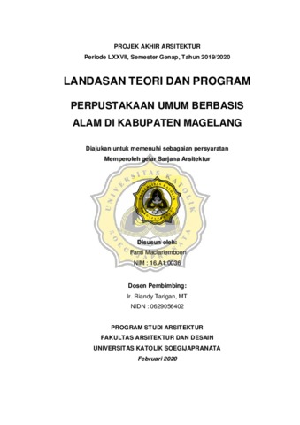 Maclariemboen, Fanti (2020) PERPUSTAKAAN UMUM BERBASIS ALAM DI KABUPATEN MAGELANG. Other thesis, Universitas Katolik Soegijapranata Semarang.