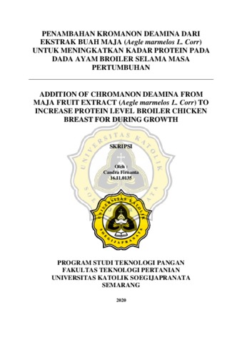 Firnanta, Candra (2020) PENAMBAHAN KROMANON DEAMINA DARI EKSTRAK BUAH MAJA (Aegle marmelos L. Corr) UNTUK MENINGKATKAN KADAR PROTEIN PADA DADA AYAM BROILER SELAMA MASA PERTUMBUHAN. Other thesis, Unika Soegijapranata Semarang.