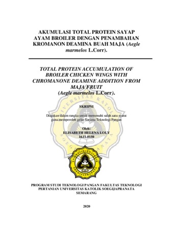 LOLY, ELISABETH HELENA (2020) AKUMULASI TOTAL PROTEIN SAYAP AYAM BROILER DENGAN PENAMBAHAN KROMANON DEAMINA BUAH MAJA (Aegle marmelos L.Corr). Other thesis, Unika Soegijapranata Semarang.