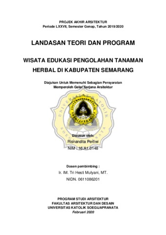 Pertiwi, Risnandita (2020) WISATA EDUKASI PENGOLAHAN TANAMAN HERBAL DI KABUPATEN SEMARANG. Other thesis, Universitas Katolik Soegijapranata Semarang.
