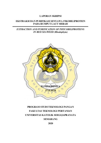 DEVITA, ELVINA (2020) EKSTRAKSI DAN PURIFIKASI SENYAWA FIKOBILIPROTEIN PADA RUMPUT LAUT MERAH. Other thesis, UNIKA SOEGIJAPRANATA SEMARANG.
