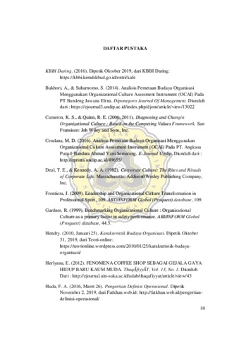 Putra, Adetama Hadi (2020) ANALISIS BUDAYA ORGANISASI PADA COFFEESHOP ATLAS N CO MENGGUNAKAN ORGANIZATIONAL CULTURE ASSESMENT INSTRUMENT (OCAI). Other thesis, Unika Soegijapranata Semarang.
