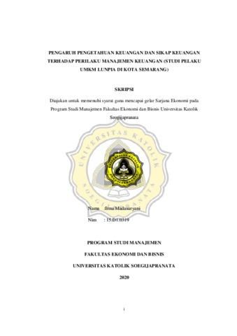 Madasuryani, Irma (2020) PENGARUH PENGETAHUAN KEUANGAN DAN SIKAP KEUANGAN TERHADAP PERILAKU MANAJEMEN KEUANGAN (STUDI PELAKU UMKM LUNPIA DI KOTA SEMARANG). Other thesis, Unika Soegijapranata Semarang.